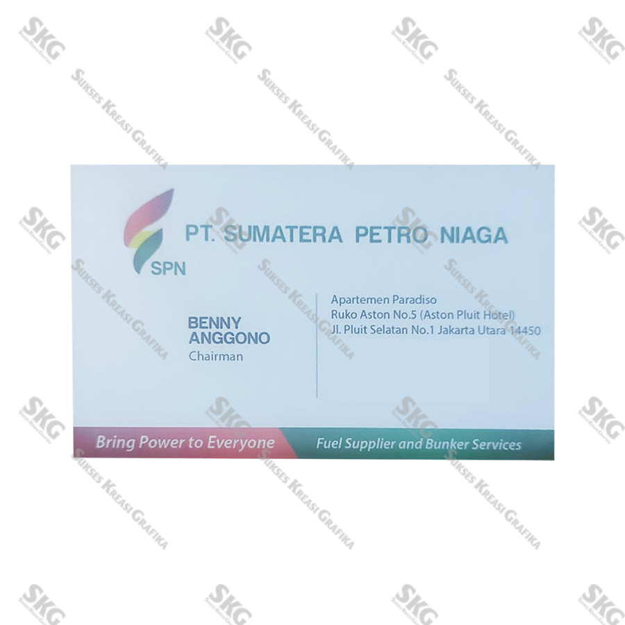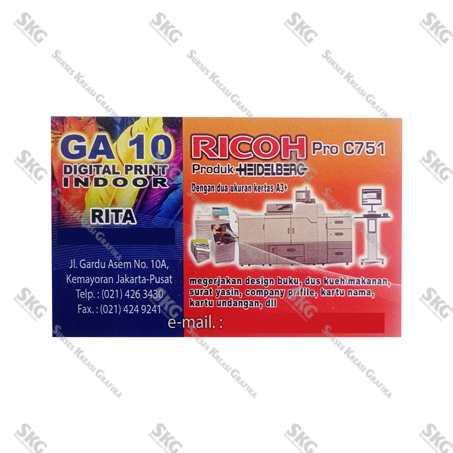 Bahan artcarton 230, finishing glossy, cetak full warna 2 sisi.