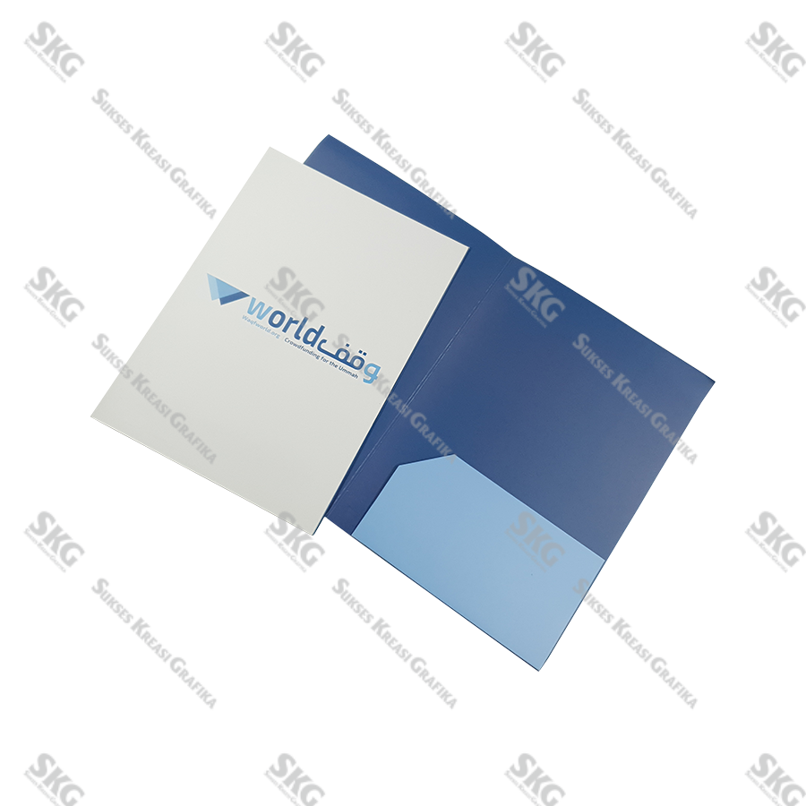 Bahan artcarton 260, finishing doff, ukuran terbuka 35 x 50 cm.