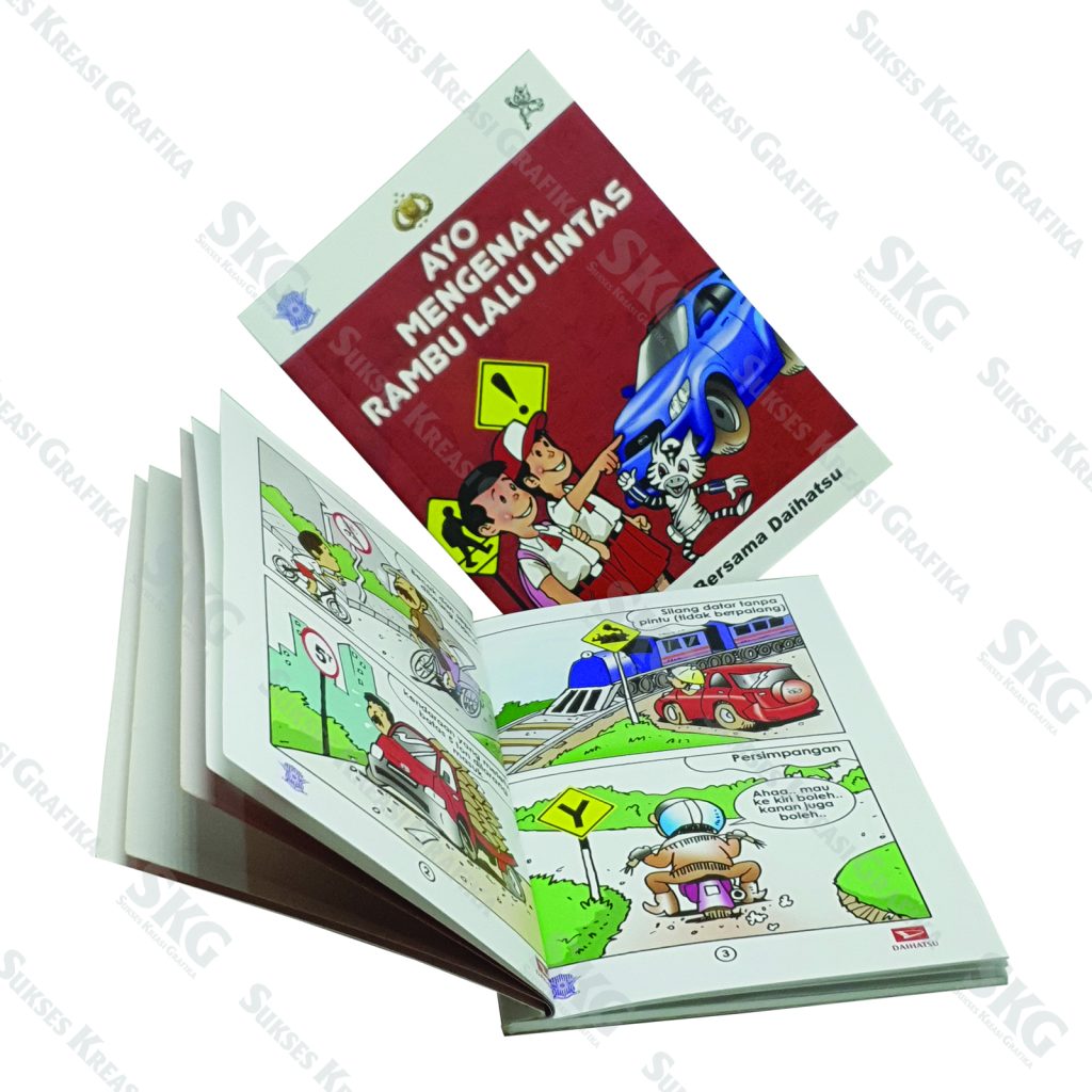Bahan HVS 60, cetak full warna, ukuran A4 (21 x 29,7 cm).