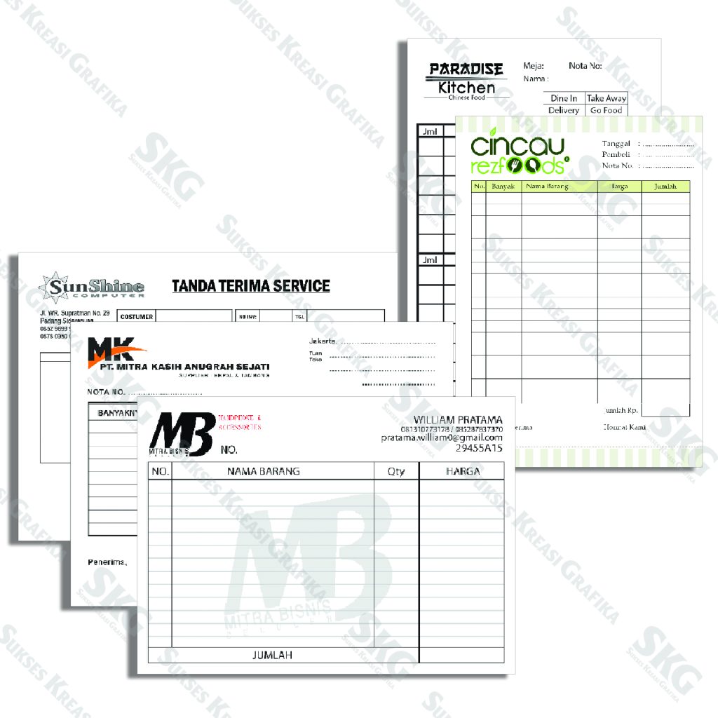 Bahan NCR, ukuran A5/A4/F4, cetak full warna.