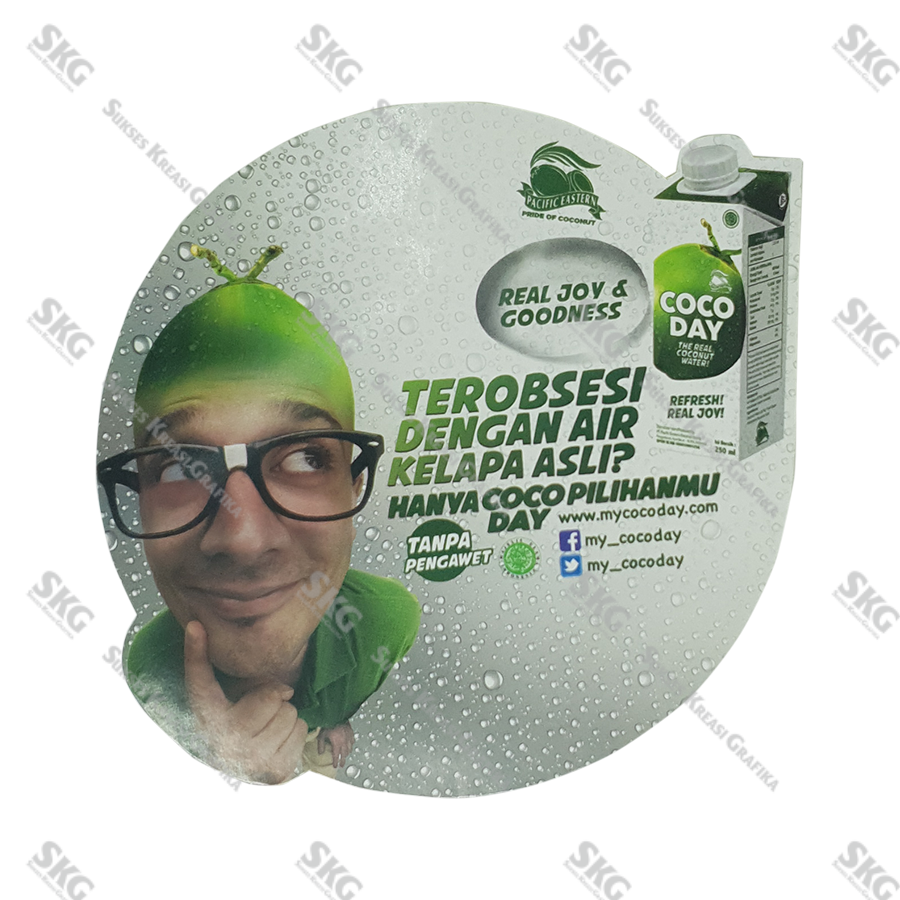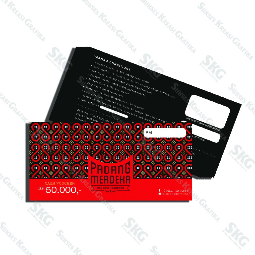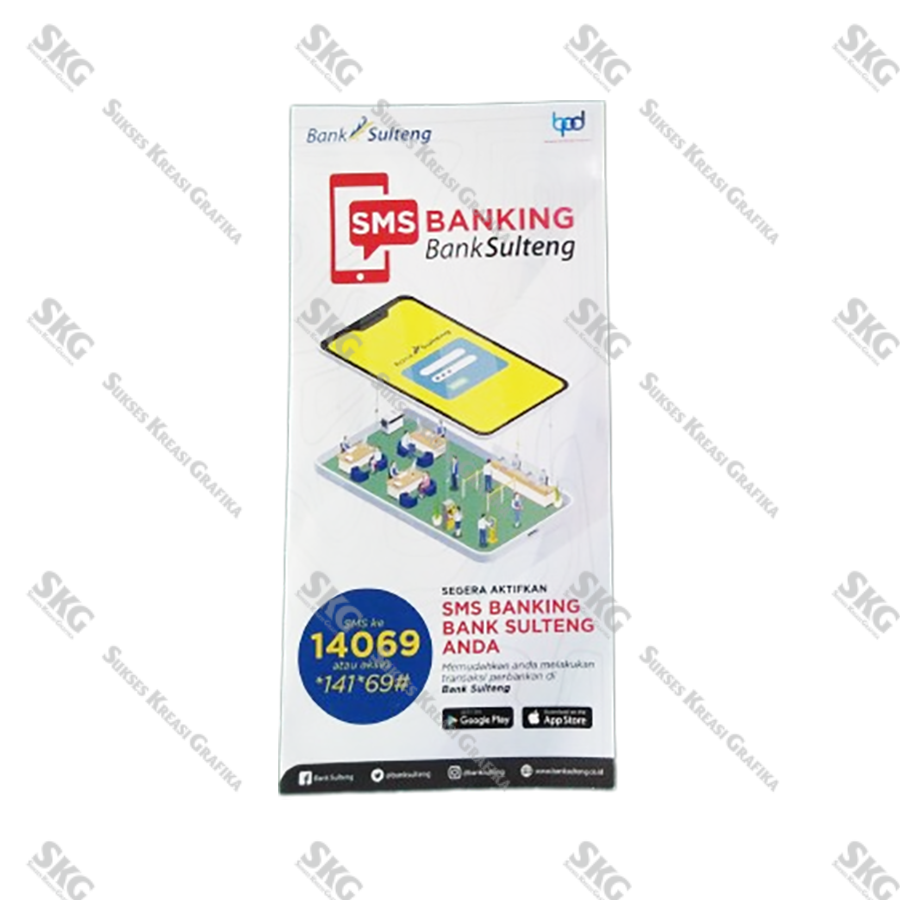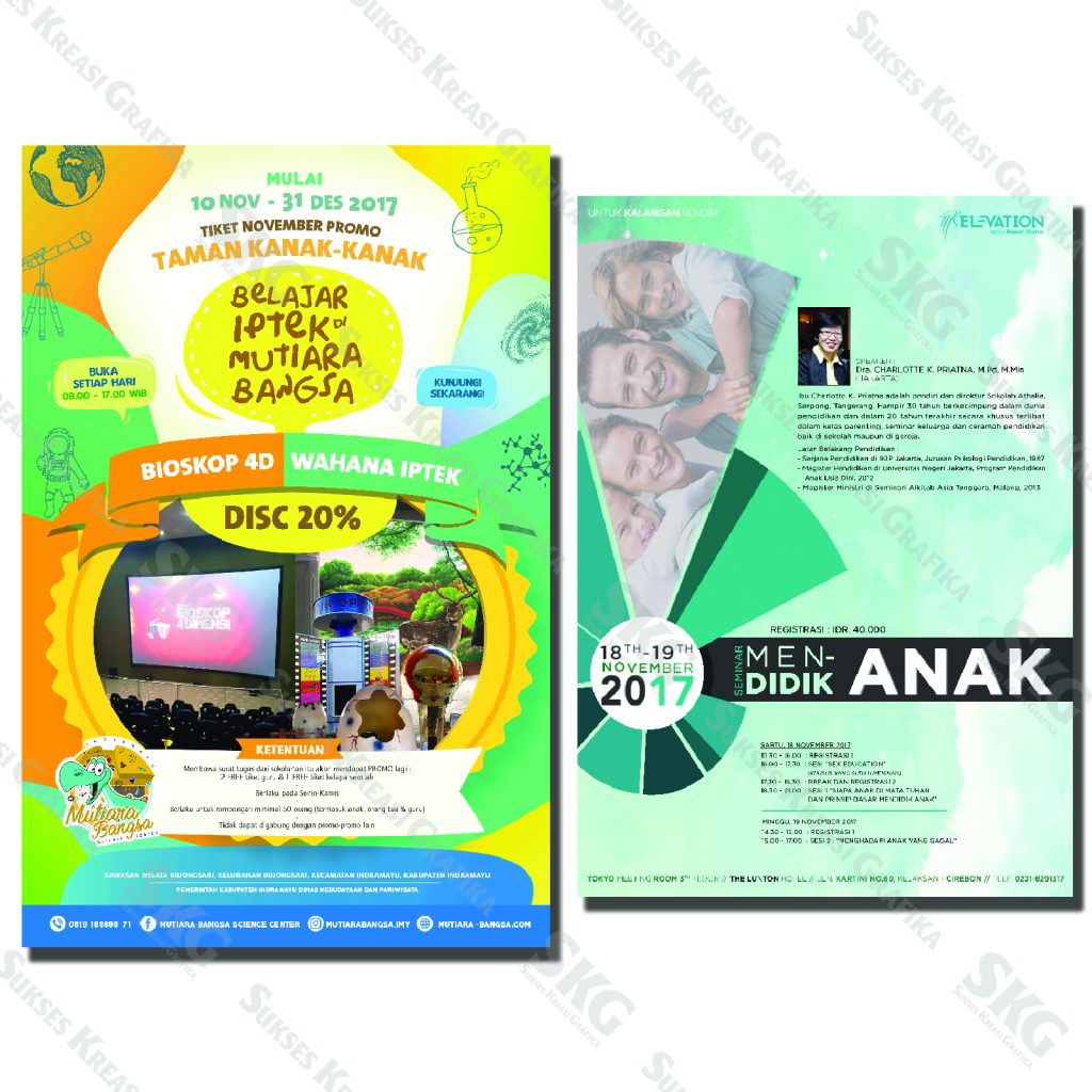 Bahan artpaper 150, cetak dua sisi, full warna, tanpa finishing.