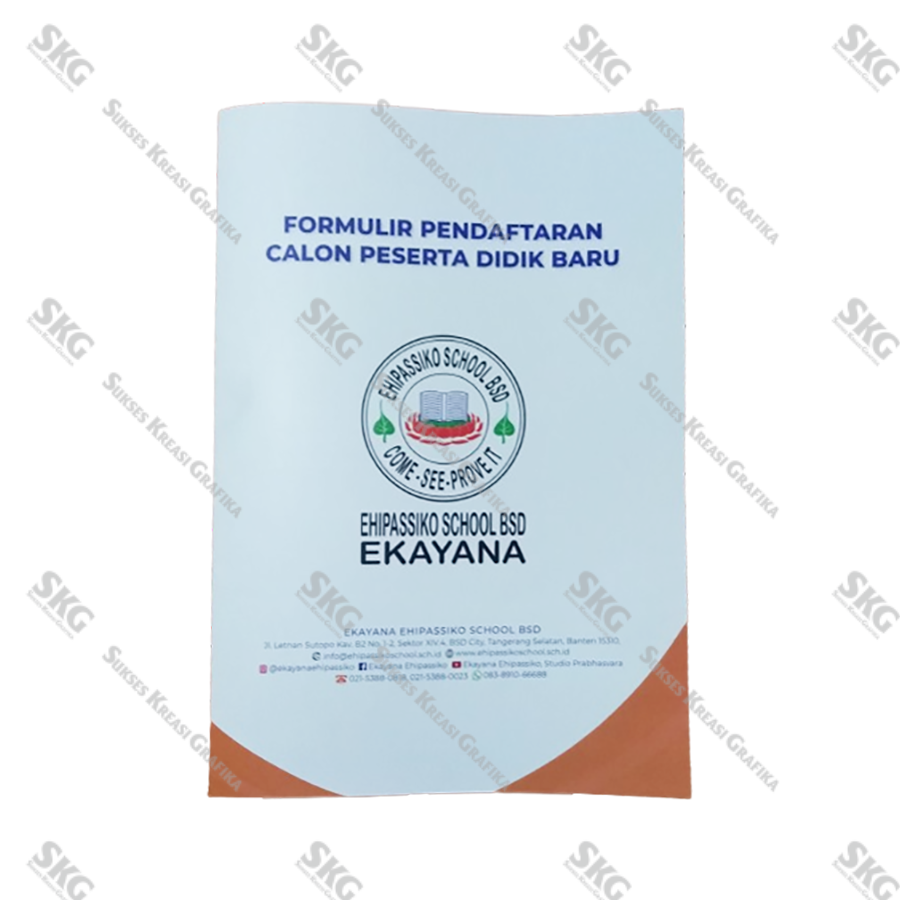 Sampul artcarton 260, isi kertas HVS, jilid kawat spiral.